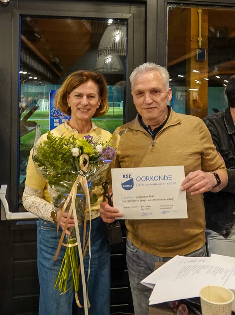 Met deze onderscheiding spreekt de vereniging haar waardering uit voor zijn jarenlange inzet en betrokkenheid bij de club. In de voordracht werd benadrukt dat hij binnen ASC ’62 bekendstaat als een echte verbinder: iemand die mensen samenbrengt, oog heeft voor het lief en leed binnen de vereniging en zich sterk maakt voor de waarden en normen die de club kenmerken.