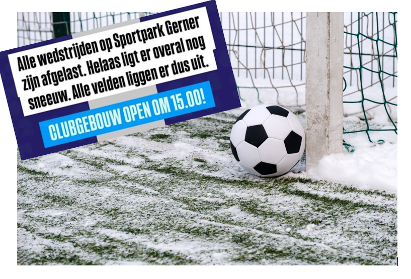 Vanwege het winterse weer en de gevallen sneeuw, in combinatie met gladheid en kwaliteit van de velden, is er besloten om tot nader order de trainingen en wedstrijden op de kunstgrasvelden en de wedstrijdvelden van Sportpark Gerner af te gelasten. Zaterdag kan er geen enkele wedstrijd doorgaan. Het clubgebouw is wel open vanaf 15.00 uur.