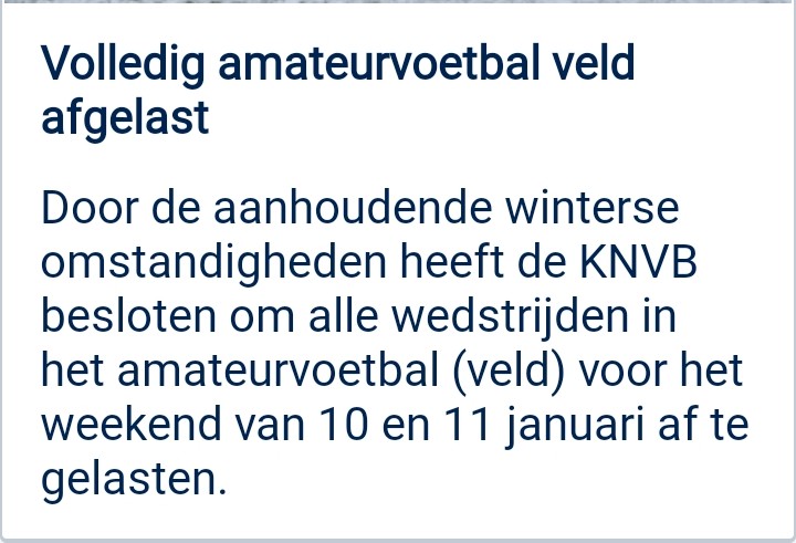 Vanwege het winterse weer en de gevallen sneeuw, in combinatie met gladheid en kwaliteit van de velden, is er in overleg met SV Dalfsen besloten om tot nader order de trainingen en voetbalwedstrijden op Sportpark Gerner af te gelasten.
