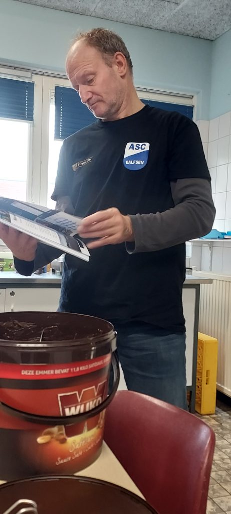 Vers van de pers, de Nieuwsbrief van oktober. In de keuken van het clubgebouw hebben ze wel even tijd om te lezen, er wordt bijna niet gevoetbald. Jos laat de satesaus voor wat het is en werpt een eerste kritische blik.